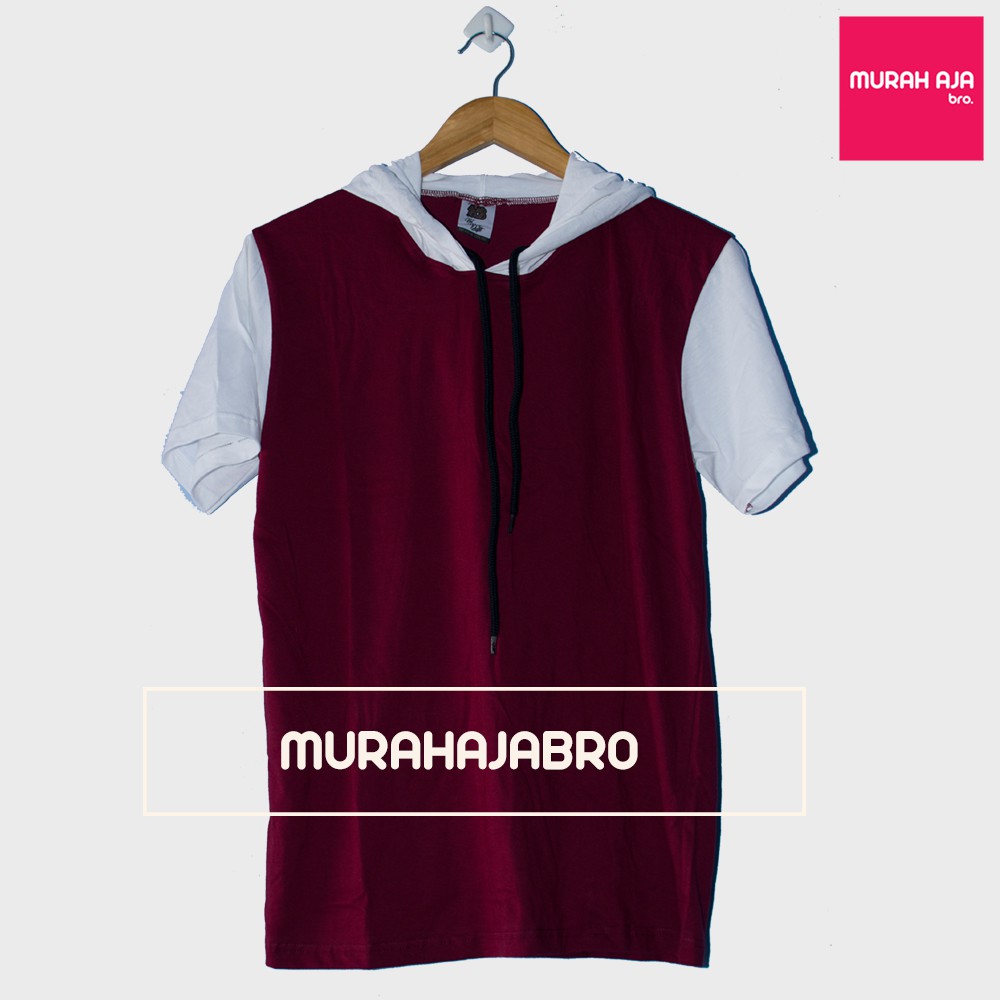 Baju Kaos Polos Hoodie Tali Lengan Pendek Raglan Maroon . Sumber Gambar : shopee.co.id